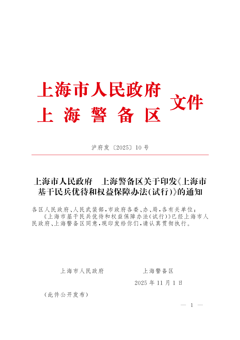 上海市人民政府 上海警備區(qū)關(guān)于印發(fā)《上海市基干民兵優(yōu)待和權(quán)益保障辦法(試行)》的通知