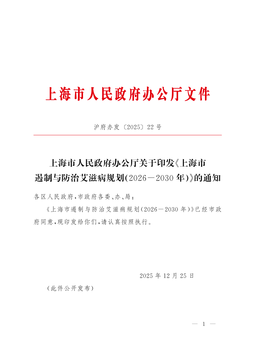 ??《上海市遏制與防治艾滋病規(guī)劃(2026-2030年)》已經市政府同意,現(xiàn)印發(fā)給你們,請認真按照執(zhí)行。