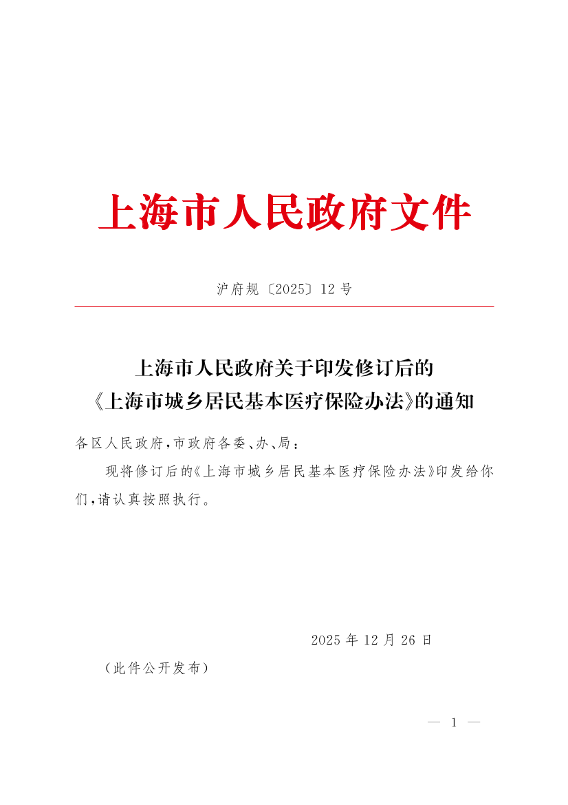 ??現(xiàn)將修訂后的《上海市城鄉(xiāng)居民基本醫(yī)療保險(xiǎn)辦法》印發(fā)給你們,請(qǐng)認(rèn)真按照?qǐng)?zhí)行。