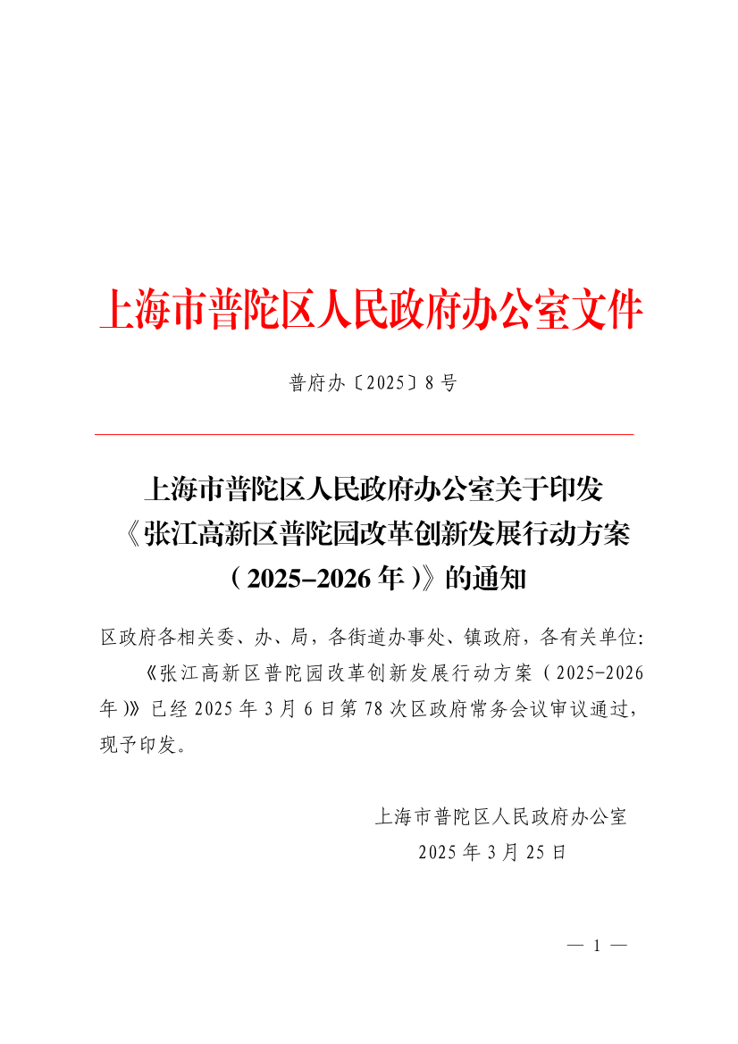 ??《張江高新區(qū)普陀園改革創(chuàng)新發(fā)展行動(dòng)方案(2025-2026年)》已經(jīng)2025年3月6日第78次區(qū)政府常務(wù)會(huì)議審議通過,現(xiàn)予印發(fā)。