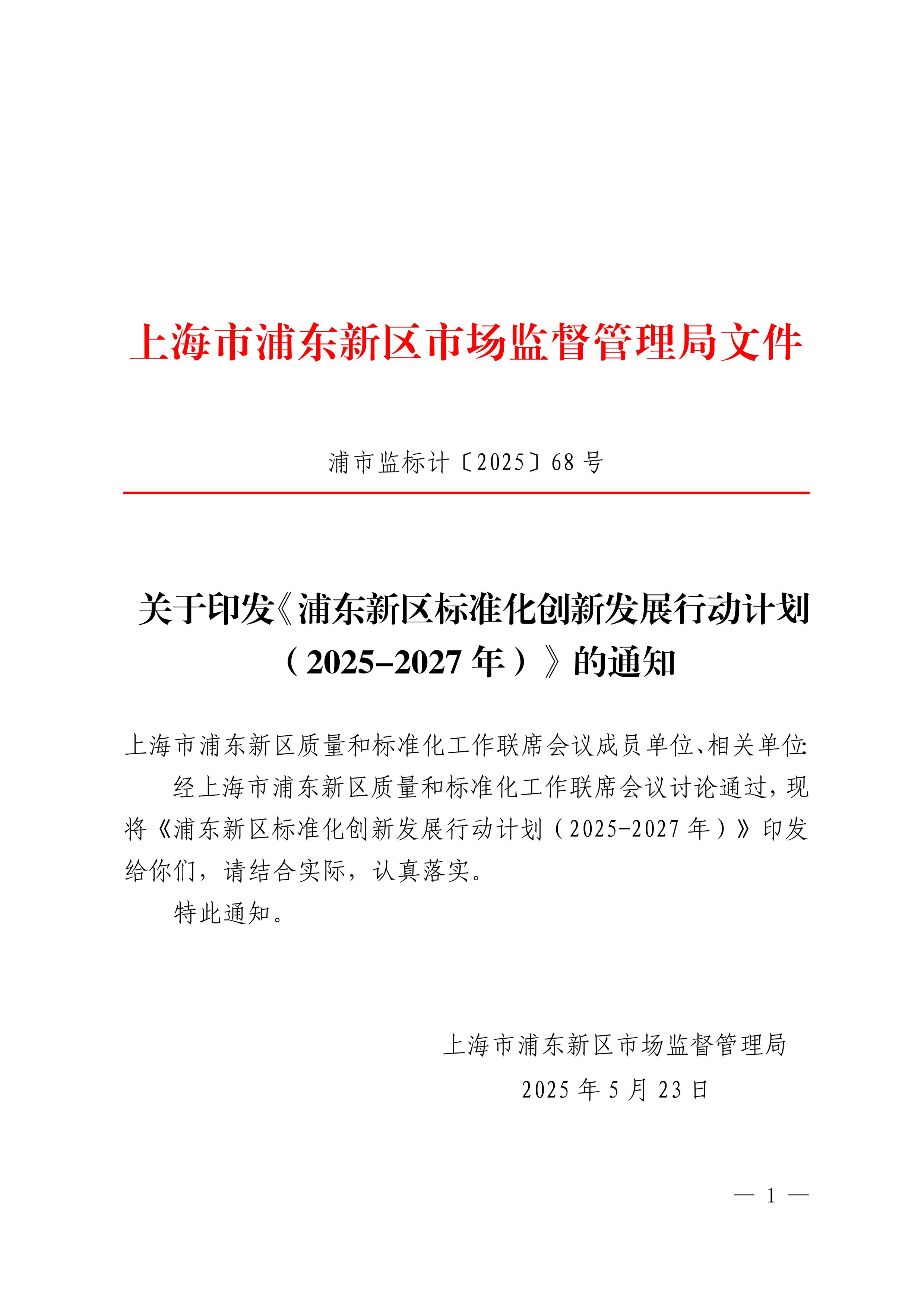 關(guān)于印發(fā)《浦東新區(qū)標(biāo)準(zhǔn)化創(chuàng)新發(fā)展行動計劃(2025-2027年)》的通知