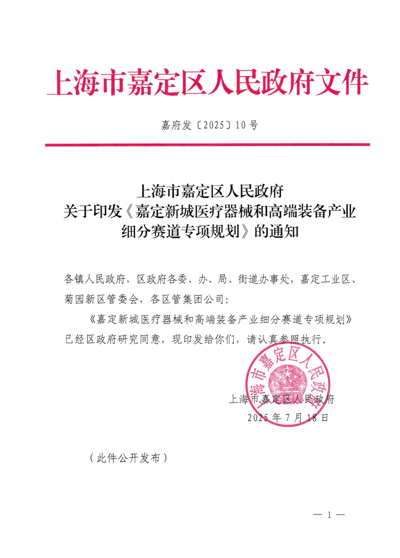 ??《嘉定新城醫(yī)療器械和高端裝備產(chǎn)業(yè)細(xì)分賽道專項(xiàng)規(guī)劃》已經(jīng)區(qū)政府研究同意,現(xiàn)印發(fā)給你們,請(qǐng)認(rèn)真參照?qǐng)?zhí)行。