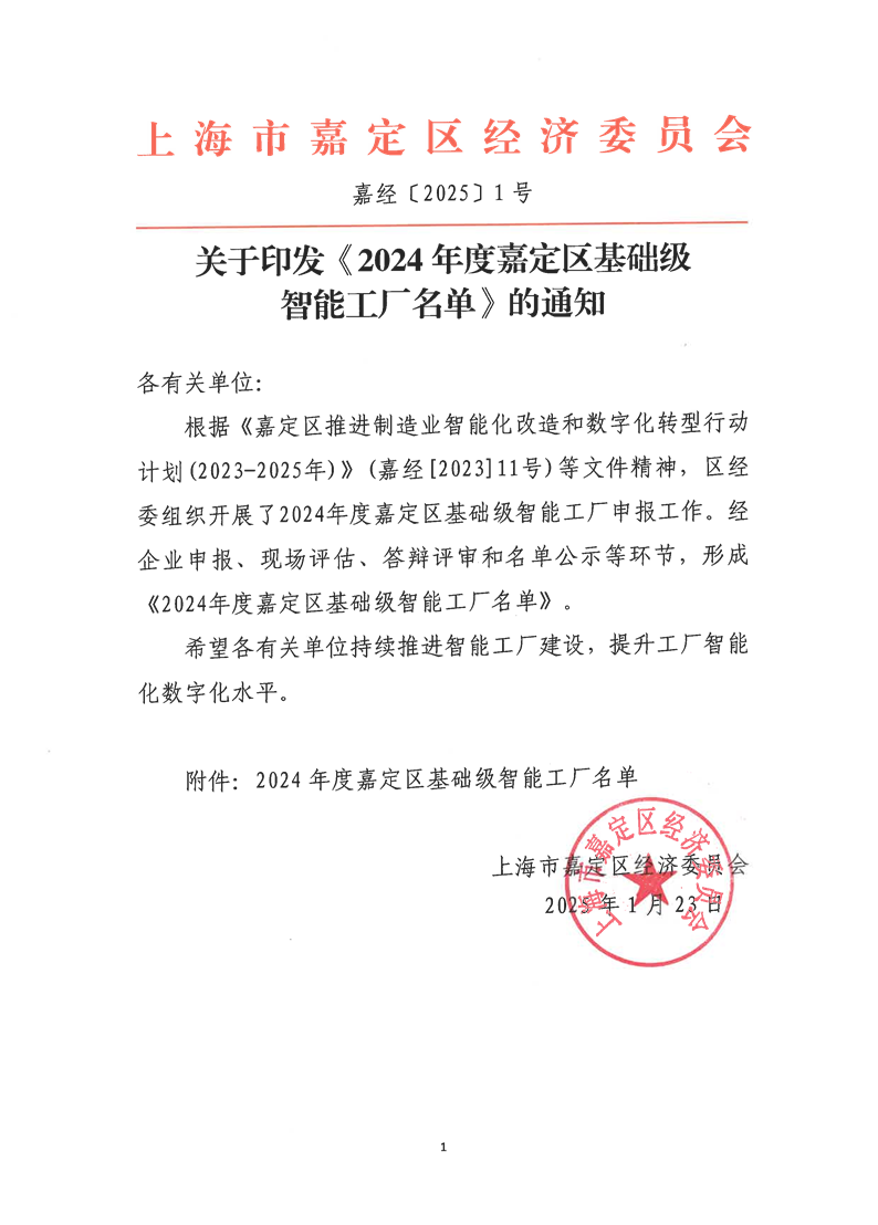 ??根據(jù)《嘉定區(qū)推進(jìn)制造業(yè)智能化改造和數(shù)字化轉(zhuǎn)型行動計劃(2023-2025年)》(嘉經(jīng)[2023]11號)等文件精神,區(qū)經(jīng)委組織開展了2024年度嘉定區(qū)基礎(chǔ)級智能工廠申報工作。經(jīng)企業(yè)申報、現(xiàn)場評估、答辯評審和名單公示等環(huán)節(jié),形成《2024年度嘉定區(qū)基礎(chǔ)級智能工廠名單》。