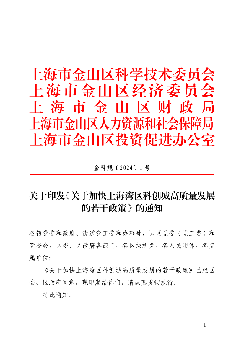 ??為深入貫徹落實《金山區(qū)加快重點區(qū)域轉(zhuǎn)型升級著力推動高質(zhì)量發(fā)展實施方案(2023-2025年)》(金委發(fā)〔2023〕7號)精神,將上海灣區(qū)科創(chuàng)城(以下簡稱“科創(chuàng)城”)建設(shè)成為一座高端人才集聚、高端科研集成、先進(jìn)成果轉(zhuǎn)化、新興產(chǎn)業(yè)匯聚、金融科技發(fā)展、品質(zhì)生活融合的生態(tài)智慧科創(chuàng)城,特制定本政策。