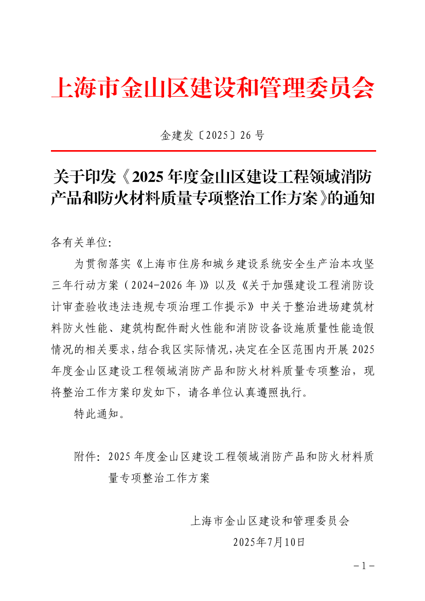 ??附件:2025年度金山區(qū)建設(shè)工程領(lǐng)域消防產(chǎn)品和防火材料質(zhì)量專項整治工作方案