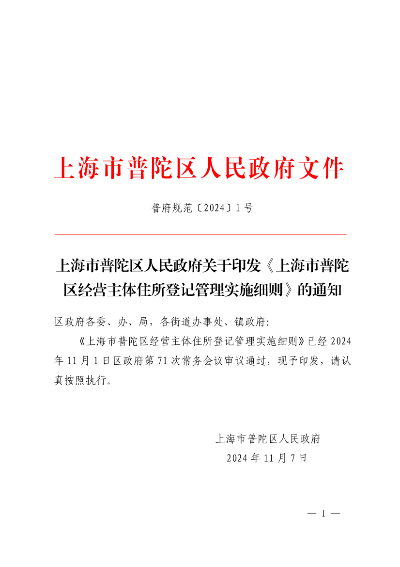 ??《上海市普陀區(qū)經(jīng)營主體住所登記管理實(shí)施細(xì)則》已經(jīng)2024年11月1日區(qū)政府第71次常務(wù)會(huì)議審議通過,現(xiàn)予印發(fā),請認(rèn)真按照執(zhí)行。