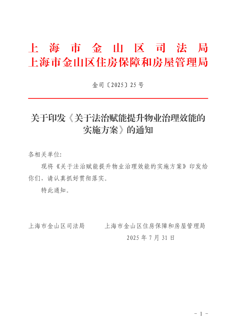 ??小區(qū)物業(yè)治理事關(guān)民生福祉、基層治理和城市品質(zhì)。為全面服務(wù)保障全區(qū)物業(yè)治理工作持續(xù)向法治化、規(guī)范化軌道深入拓展,根據(jù)《上海市住宅物業(yè)管理規(guī)定》《關(guān)于印發(fā)<金山區(qū)黨建引領(lǐng)小區(qū)物業(yè)治理“六力提升”專項行動方案>的通知》(金委組〔2025〕97號)《關(guān)于印發(fā)<關(guān)于促進(jìn)金山區(qū)住宅物業(yè)高質(zhì)量發(fā)展的實施意見>的通知》(金房管規(guī)〔2024〕63號),制定關(guān)于法治賦能提升物業(yè)治理效能的實施方案。