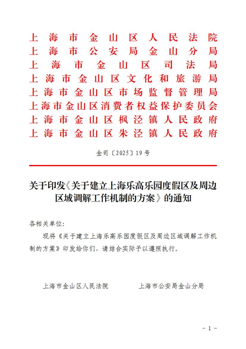 ??區(qū)法院、公安金山分局、區(qū)司法局、區(qū)文旅局、區(qū)市場監(jiān)管局、區(qū)消保委、楓涇鎮(zhèn)、朱涇鎮(zhèn)共同負(fù)責(zé)推進(jìn)樂高樂園度假區(qū)及周邊區(qū)域矛盾糾紛排查化解工作。