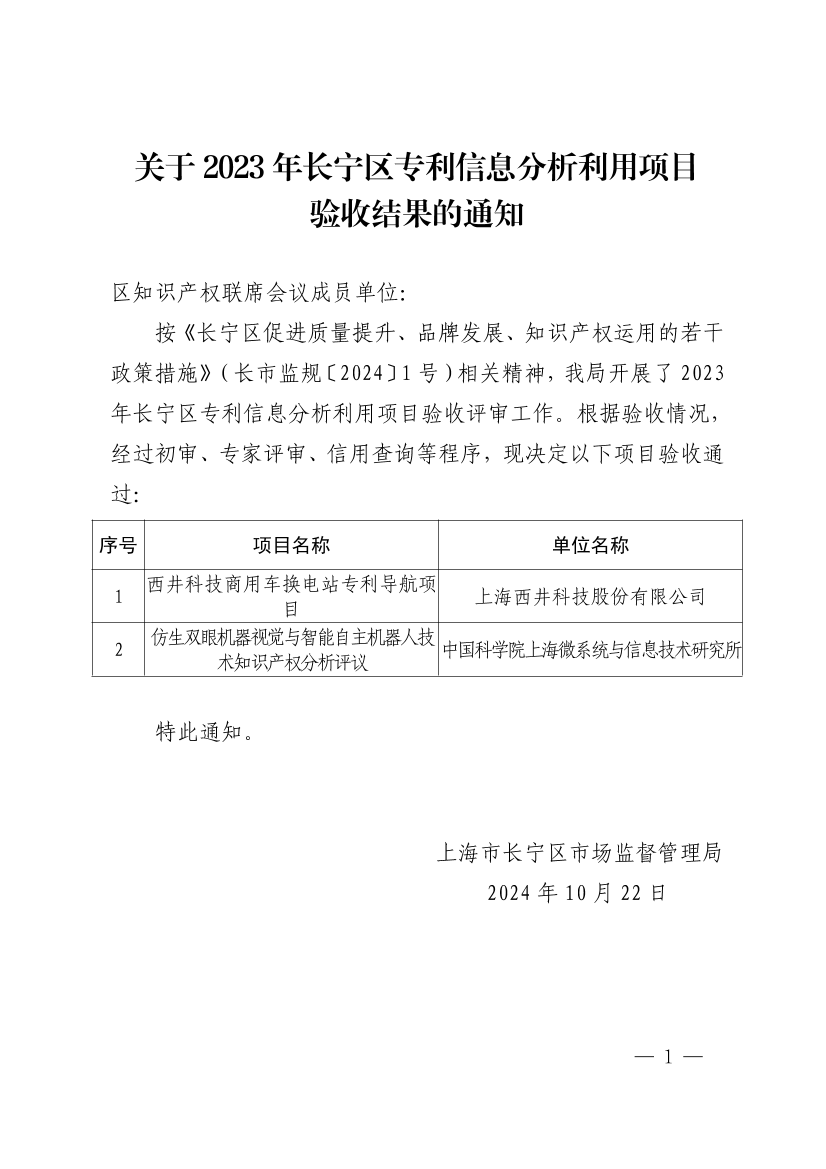 關(guān)于2023年長寧區(qū)專利信息分析利用項目驗收結(jié)果的通知