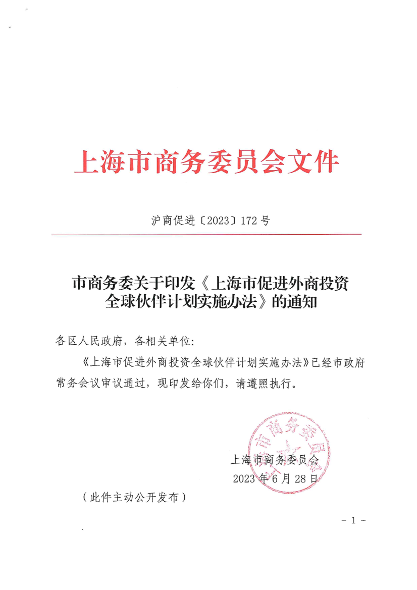 ??《上海市促進外商投資全球伙伴計劃實施辦法》已經(jīng)市政府常務(wù)會議審議通過,現(xiàn)印發(fā)給你們,請參照執(zhí)行。