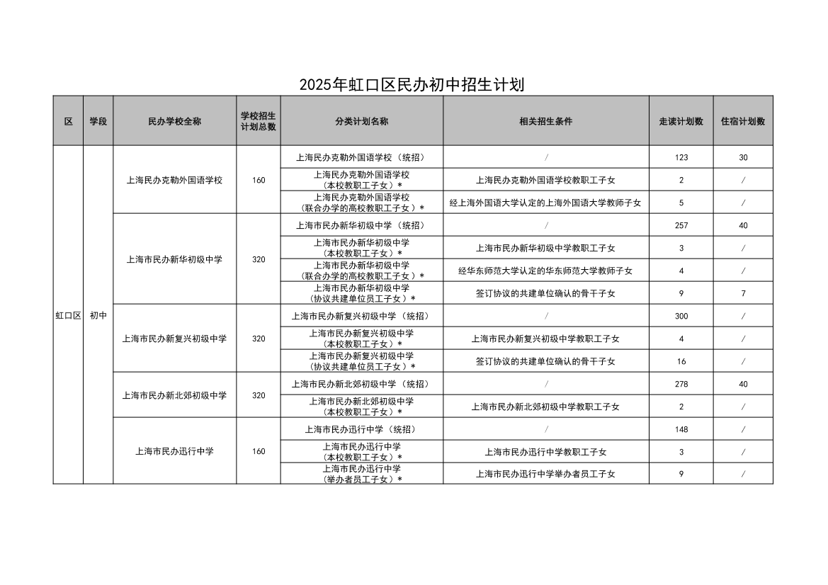 2025年虹口區(qū)民辦初中招生計(jì)劃
