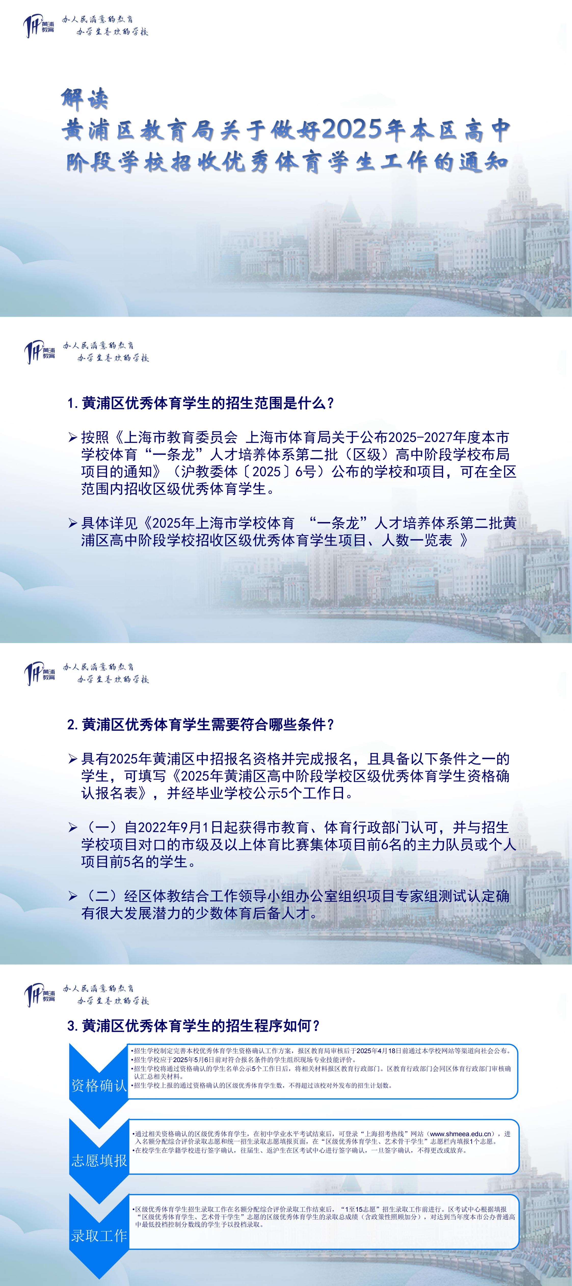 解讀《黃浦區(qū)教育局關(guān)于做好2025年本區(qū)高中階段學校招收優(yōu)秀體育學生工作的通知》