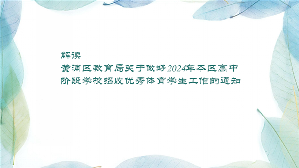 解讀《黃浦區(qū)教育局關(guān)于做好2024年本區(qū)高中階段學(xué)校招收優(yōu)秀體育學(xué)生工作的通知》