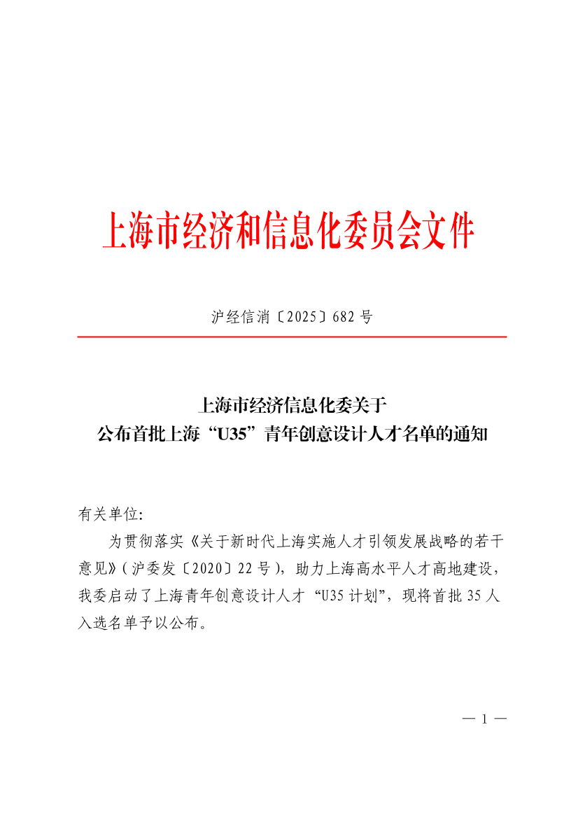 首批上?!癠35”青年創(chuàng)意設計人才名單