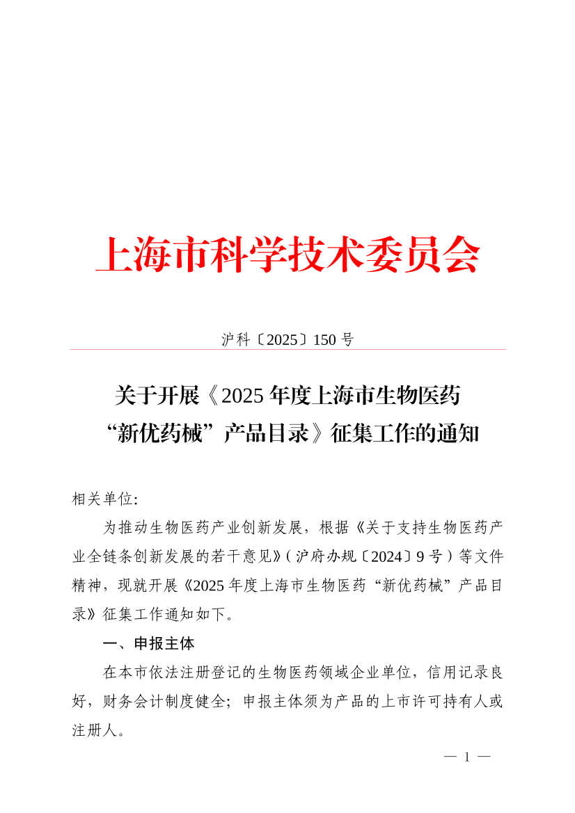 ??為推動生物醫(yī)藥產(chǎn)業(yè)創(chuàng)新發(fā)展,根據(jù)《關(guān)于支持生物醫(yī)藥產(chǎn)業(yè)全鏈條創(chuàng)新發(fā)展的若干意見》(滬府辦規(guī)〔2024〕9號)等文件精神,現(xiàn)就開展《2025年度上海市生物醫(yī)藥“新優(yōu)藥械”產(chǎn)品目錄》征集工作通知如下。