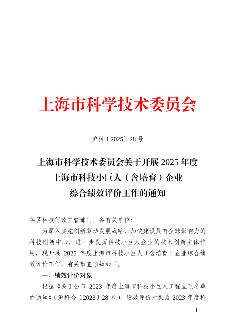 ??為深入實(shí)施創(chuàng)新驅(qū)動(dòng)發(fā)展戰(zhàn)略,加快建設(shè)具有全球影響力的科技創(chuàng)新中心,進(jìn)一步發(fā)揮科技小巨人企業(yè)的技術(shù)創(chuàng)新主體作用,現(xiàn)開展2025年度上海市科技小巨人(含培育)企業(yè)綜合績(jī)效評(píng)價(jià)工作,有關(guān)事宜通知如下。