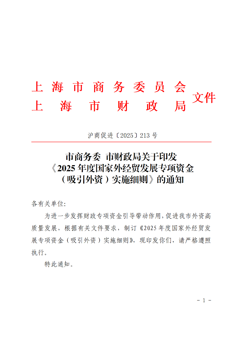 ??本細則自印發(fā)之日起施行,針對2025年度國家外經(jīng)貿(mào)發(fā)展專項資金(吸引外資)有效。