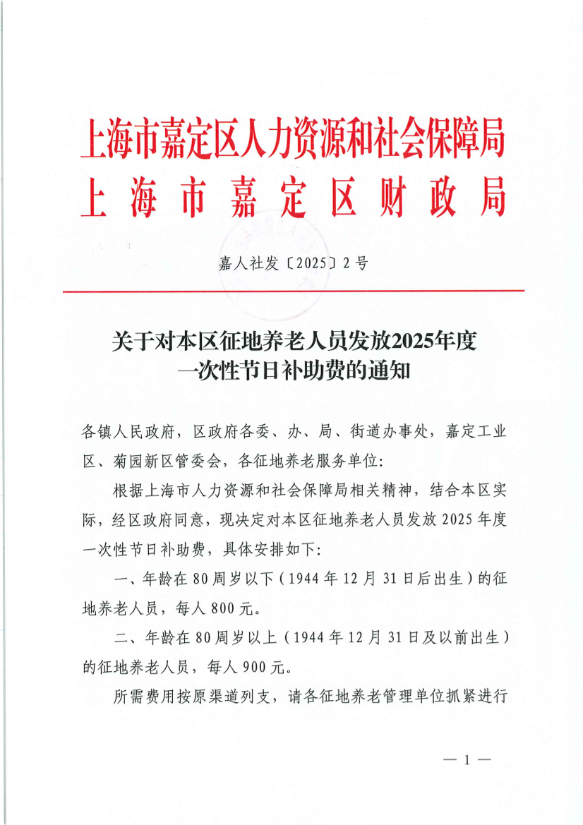 ??根據(jù)上海市人力資源和社會保障局相關(guān)精神,結(jié)合本區(qū)實(shí)際,經(jīng)區(qū)政府同意,現(xiàn)決定對本區(qū)征地養(yǎng)老人員發(fā)放2025年度一次性節(jié)日補(bǔ)助費(fèi),具體安排如下: