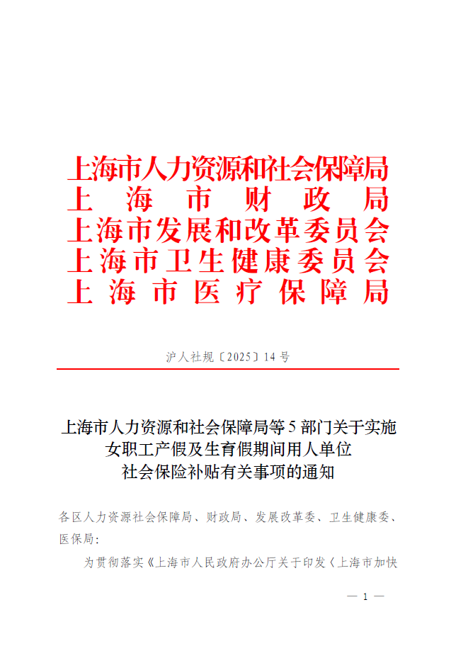 ??為貫徹落實(shí)《上海市人民政府辦公廳關(guān)于印發(fā)〈上海市加快完善生育支持政策體系推動(dòng)建設(shè)生育友好型社會(huì)的若干措施〉的通知》(滬府辦發(fā)〔2024〕24號(hào)),探索建立用人單位女職工生育成本共擔(dān)機(jī)制,促進(jìn)女性高質(zhì)量充分就業(yè)。經(jīng)市政府同意,決定對(duì)符合條件的用人單位在女職工產(chǎn)假及生育假期間實(shí)施社會(huì)保險(xiǎn)補(bǔ)貼政策?,F(xiàn)將有關(guān)事項(xiàng)通知如下: