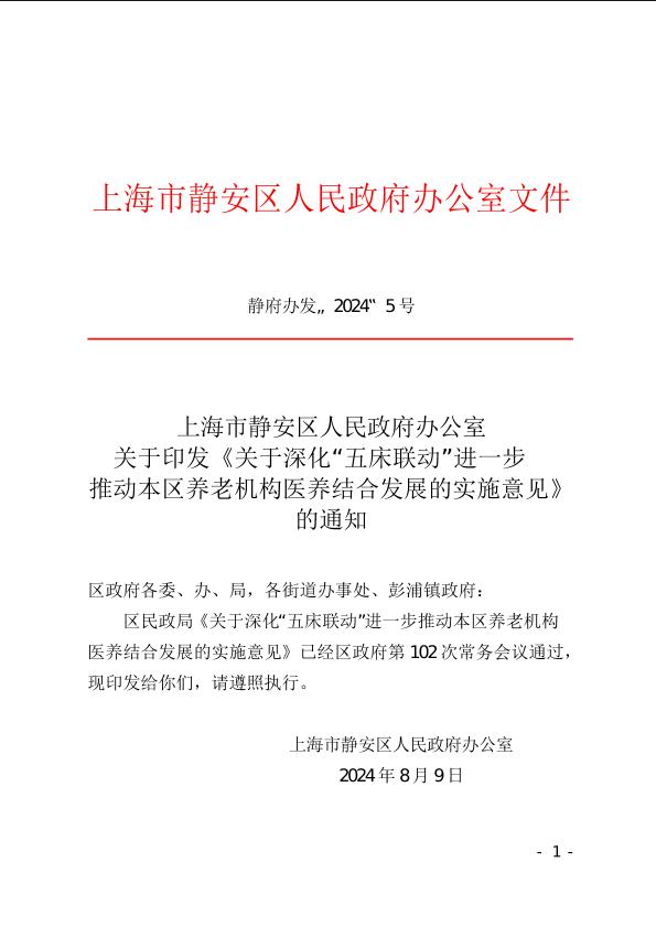 關(guān)于深化“五床聯(lián)動(dòng)” 進(jìn)一步推動(dòng)本區(qū)養(yǎng)老機(jī)構(gòu)醫(yī)養(yǎng)結(jié)合發(fā)展的實(shí)施意見