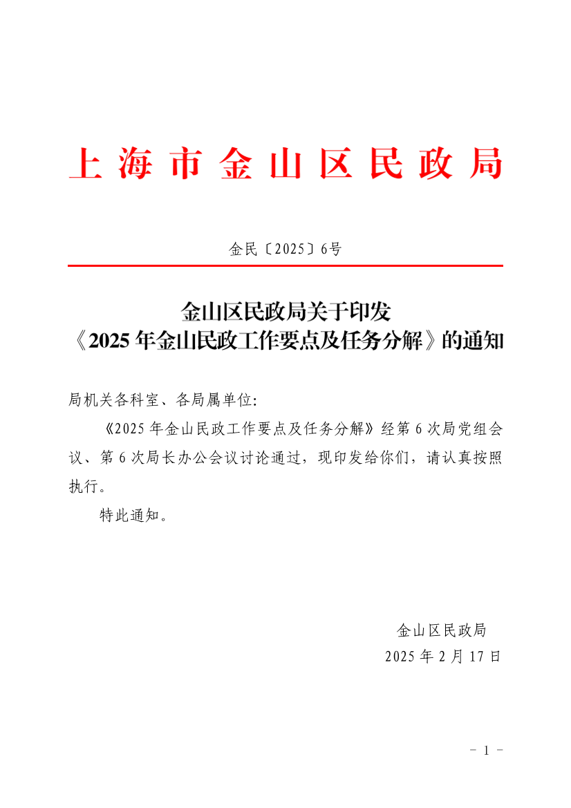 ??《2025年金山民政工作要點(diǎn)及任務(wù)分解》經(jīng)第6次局黨組會(huì)議、第6次局長(zhǎng)辦公會(huì)議討論通過(guò),現(xiàn)印發(fā)給你們,請(qǐng)認(rèn)真按照?qǐng)?zhí)行。