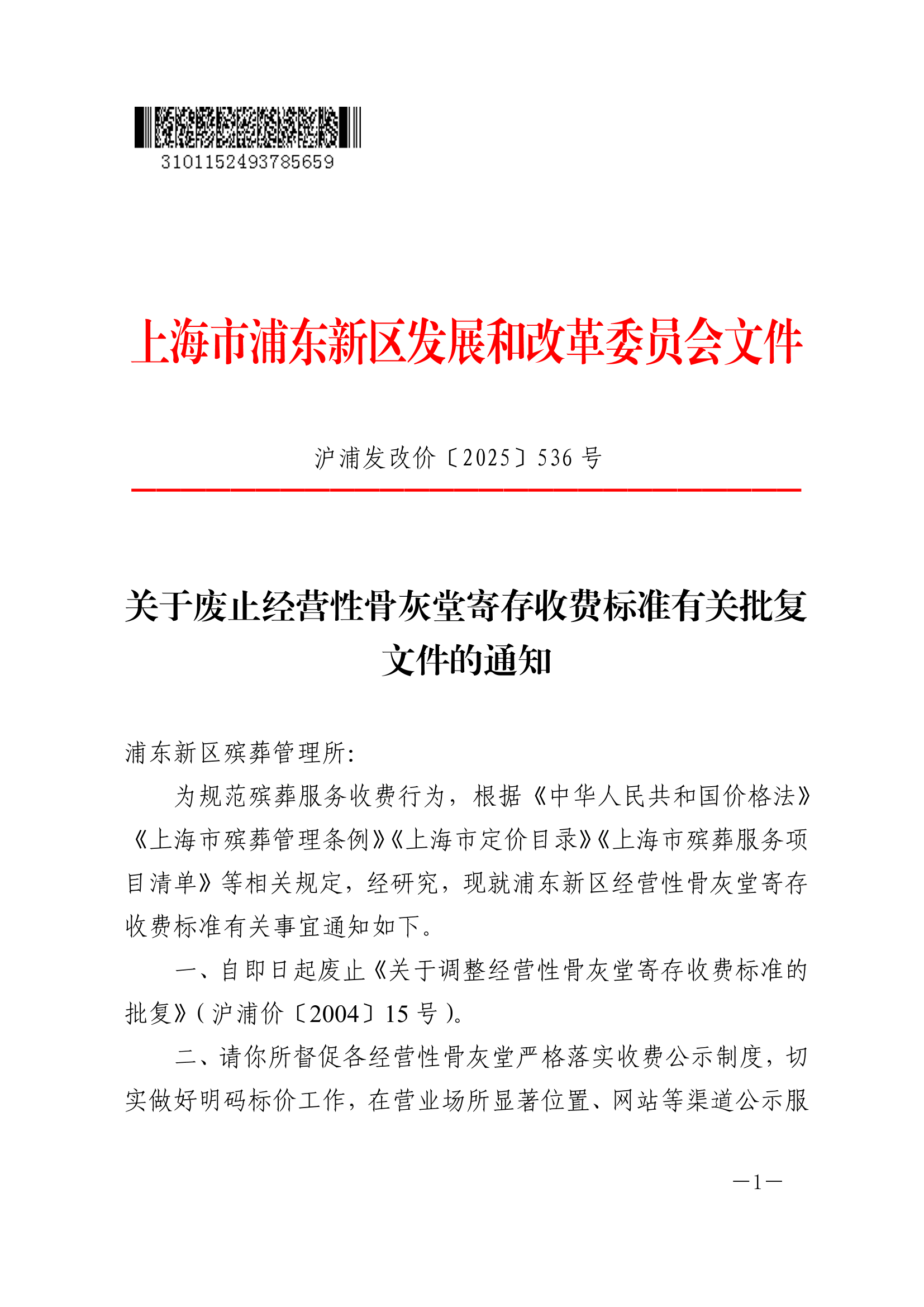 ??一、自即日起廢止《關(guān)于調(diào)整經(jīng)營性骨灰堂寄存收費標準的批復(fù)》(滬浦價〔2004〕15號)。