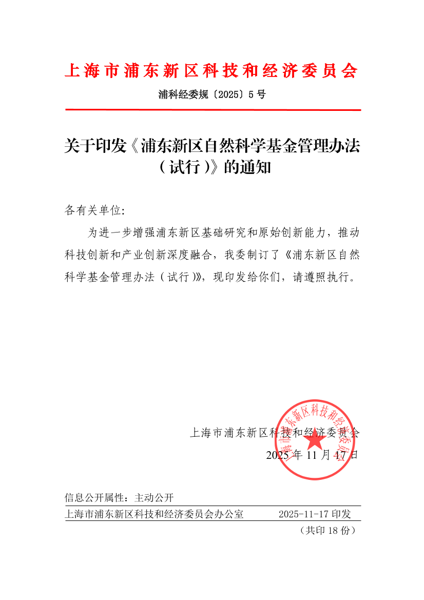 ??為進(jìn)一步增強(qiáng)浦東新區(qū)基礎(chǔ)研究和原始創(chuàng)新能力,推動(dòng)科技創(chuàng)新和產(chǎn)業(yè)創(chuàng)新深度融合,我委制訂了《浦東新區(qū)自然科學(xué)基金管理辦法(試行)》,現(xiàn)印發(fā)給你們,請(qǐng)遵照?qǐng)?zhí)行。