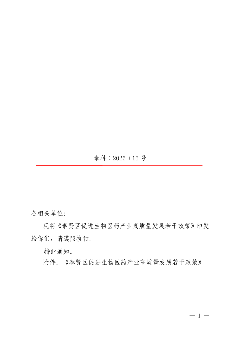??現(xiàn)將《奉賢區(qū)促進生物醫(yī)藥產業(yè)高質量發(fā)展若干政策》印發(fā)給你們,請遵照執(zhí)行。