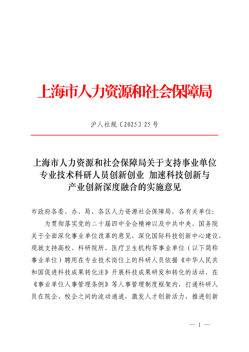 ??為貫徹落實(shí)黨的二十屆四中全會(huì)精神以及中共中央、國(guó)務(wù)院關(guān)于全面深化事業(yè)單位改革的意見(jiàn),深化國(guó)際科技創(chuàng)新中心建設(shè),現(xiàn)就支持高校、科研院所、醫(yī)療衛(wèi)生機(jī)構(gòu)等事業(yè)單位(以下簡(jiǎn)稱(chēng)事業(yè)單位)聘用在專(zhuān)業(yè)技術(shù)崗位上的科研人員依據(jù)《中華人民共和國(guó)促進(jìn)科技成果轉(zhuǎn)化法》開(kāi)展科技成果研發(fā)和轉(zhuǎn)化的活動(dòng),在《事業(yè)單位人事管理?xiàng)l例》等人事管理制度框架內(nèi),打通科研人員在院企、校企之間的流動(dòng)通道,激發(fā)人才創(chuàng)新活力,推進(jìn)創(chuàng)新鏈、產(chǎn)業(yè)鏈、資金鏈、人才鏈深度融合,結(jié)合本市實(shí)際,制定本實(shí)施意見(jiàn)。