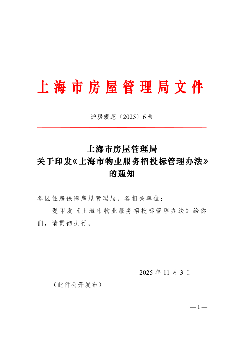 ??現(xiàn)印發(fā)《上海市物業(yè)服務(wù)招投標(biāo)管理辦法》給你們,請(qǐng)貫徹執(zhí)行。