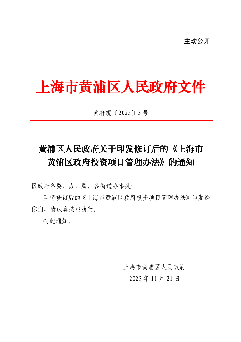 關(guān)于印發(fā)修訂后的《上海市黃浦區(qū)政府投資項(xiàng)目管理辦法》的通知