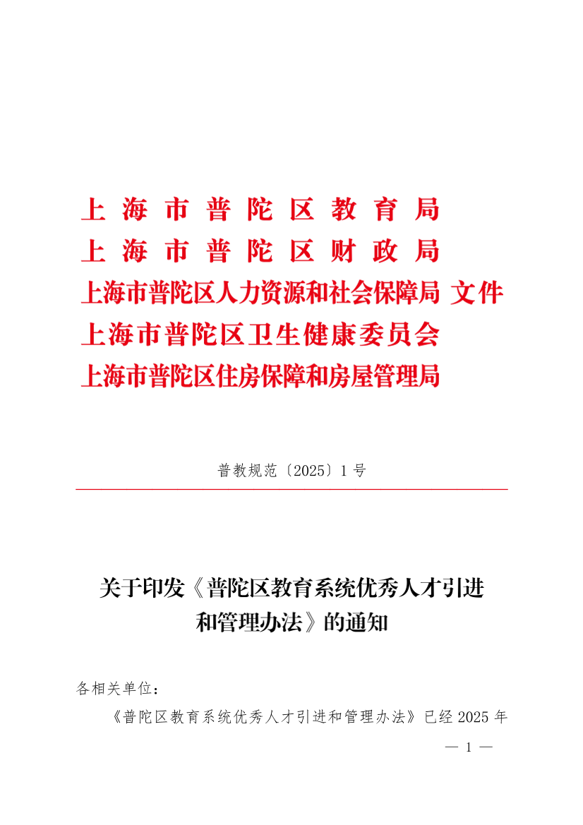 關(guān)于印發(fā)《普陀區(qū)教育系統(tǒng)優(yōu)秀人才引進(jìn)和管理辦法》的通知