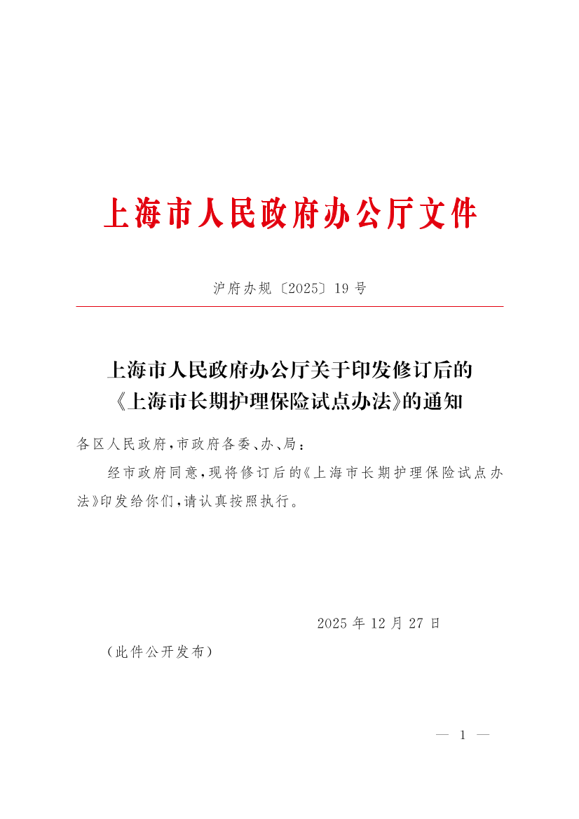 ??經(jīng)市政府同意,現(xiàn)將修訂后的《上海市長期護(hù)理保險試點辦法》印發(fā)給你們,請認(rèn)真按照執(zhí)行。