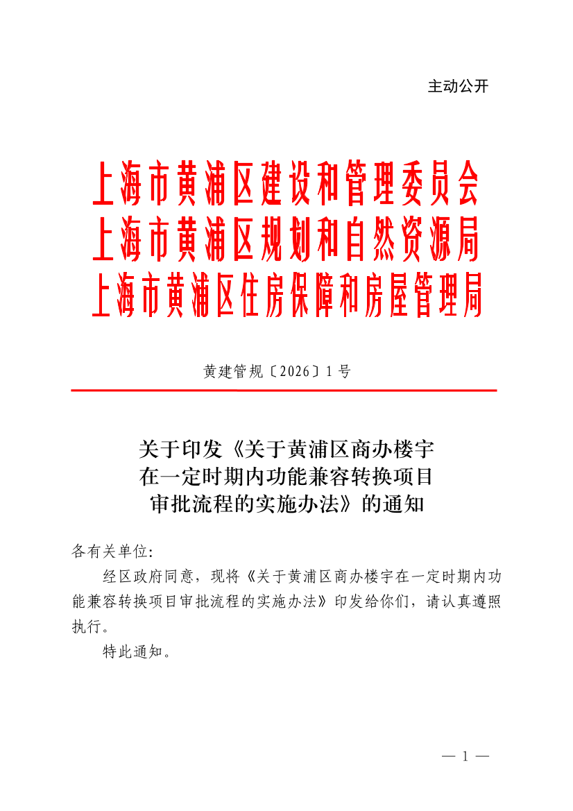 關(guān)于印發(fā)《關(guān)于黃浦區(qū)商辦樓宇在一定時(shí)期內(nèi)功能兼容轉(zhuǎn)換項(xiàng)目審批流程的實(shí)施辦法》的通知