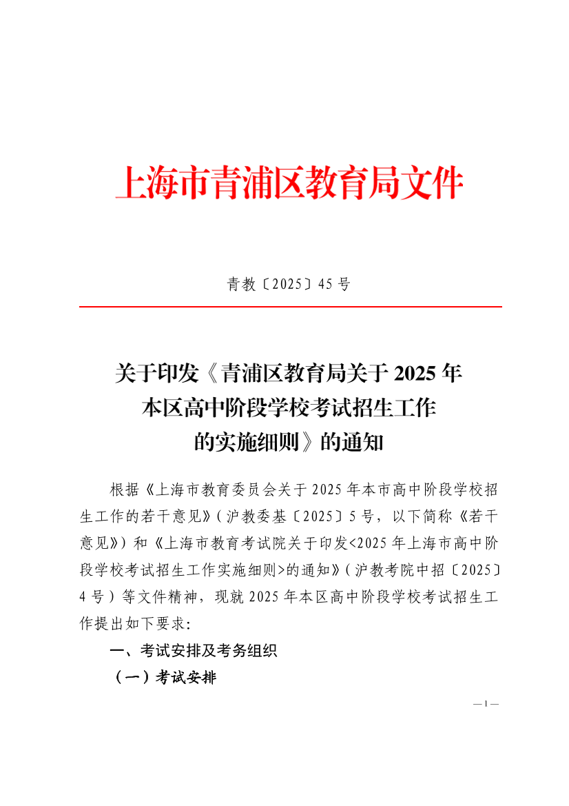 ??根據(jù)《上海市教育委員會(huì)關(guān)于2025年本市高中階段學(xué)校招生工作的若干意見》(滬教委基〔2025〕5號(hào),以下簡(jiǎn)稱《若干意見》)和《上海市教育考試院關(guān)于印發(fā)<2025年上海市高中階段學(xué)??荚囌猩ぷ鲗?shí)施細(xì)則>的通知》(滬教考院中招〔2025〕4號(hào))等文件精神,現(xiàn)就2025年本區(qū)高中階段學(xué)??荚囌猩ぷ魈岢鋈缦乱螅?/p>