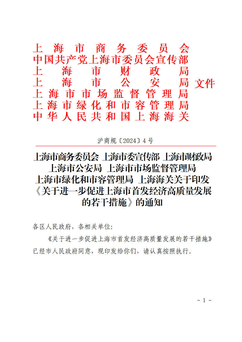 ??《關于進一步促進上海市首發(fā)經濟高質量發(fā)展的若干措施》已經市人民政府同意,現(xiàn)印發(fā)給你們,請認真按照執(zhí)行。