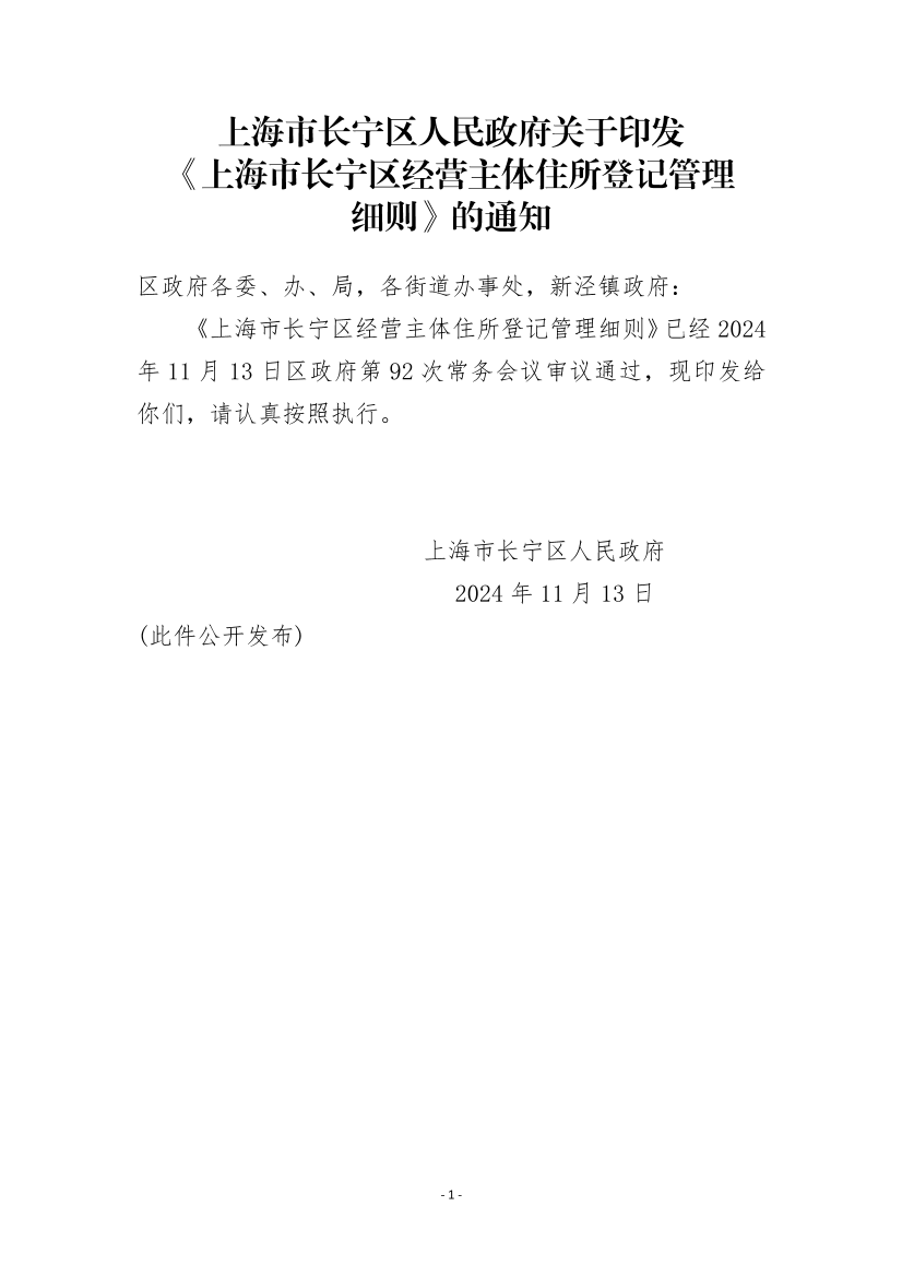 上海市長(zhǎng)寧區(qū)人民政府關(guān)于印發(fā)《上海市長(zhǎng)寧區(qū)經(jīng)營(yíng)主體住所登記管理細(xì)則》的通知