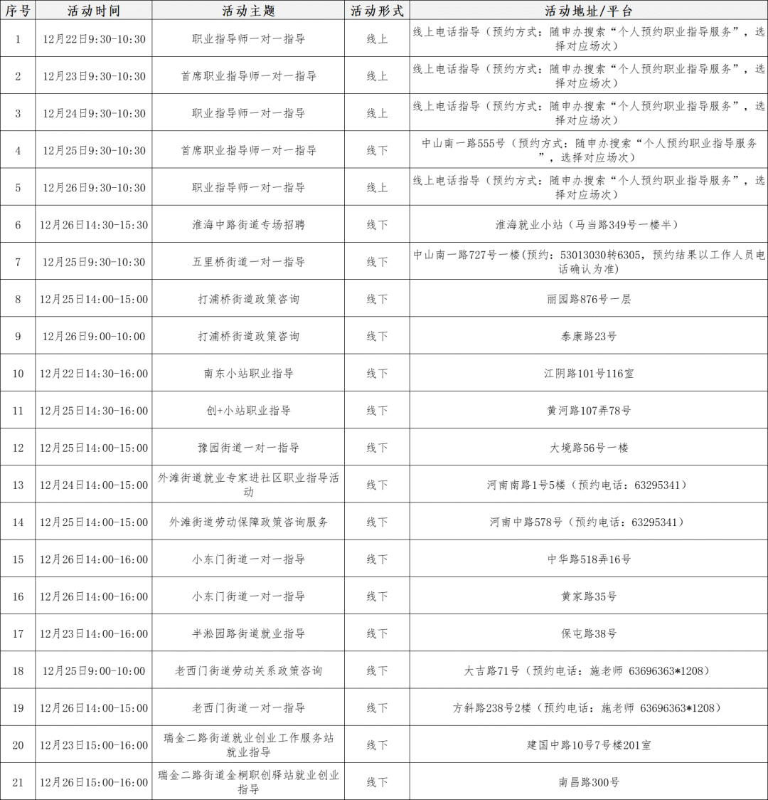 ??主題:“樂(lè)業(yè)上海優(yōu)+”失業(yè)保險(xiǎn)金、大齡就業(yè)崗位補(bǔ)貼、靈活就業(yè)社會(huì)保險(xiǎn)費(fèi)補(bǔ)貼“面對(duì)面”政策咨詢(xún)