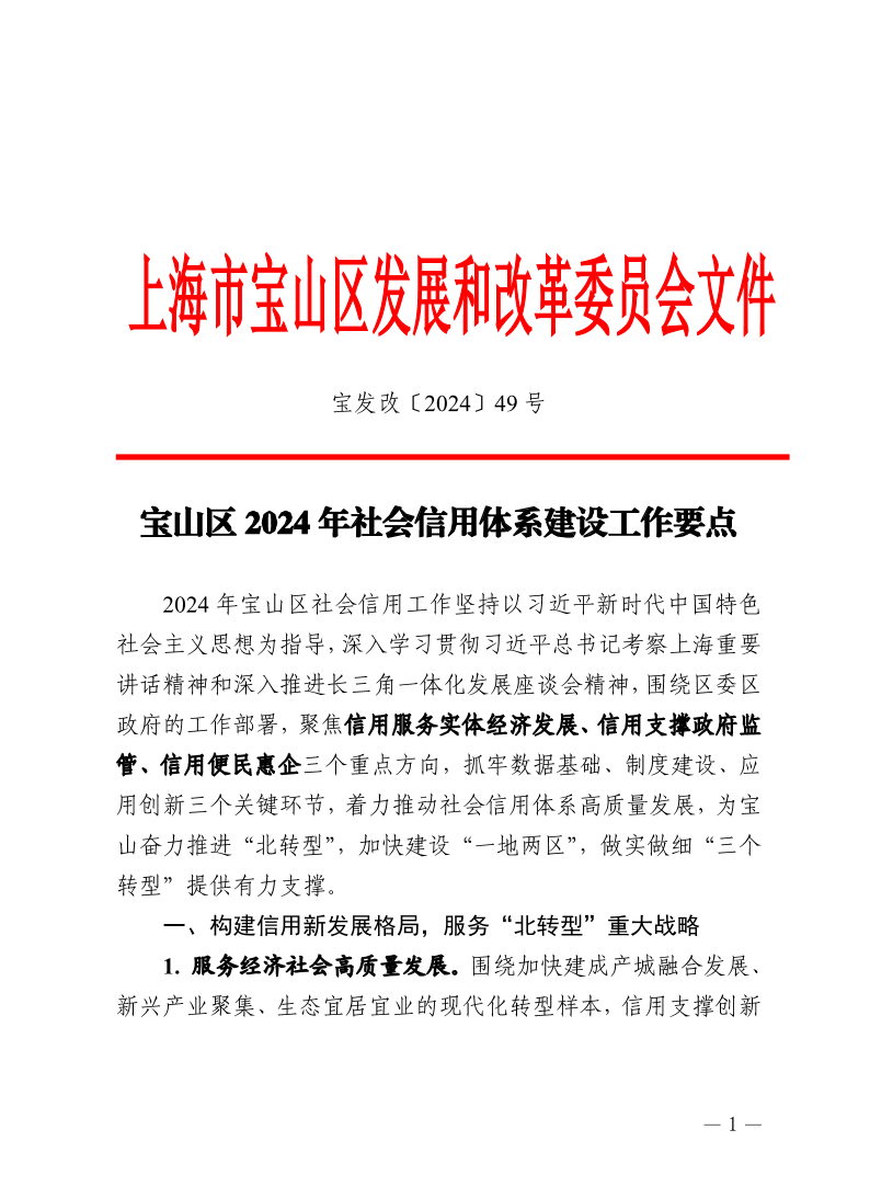 2024年寶山區(qū)社會(huì)信用體系建設(shè)工作要點(diǎn)