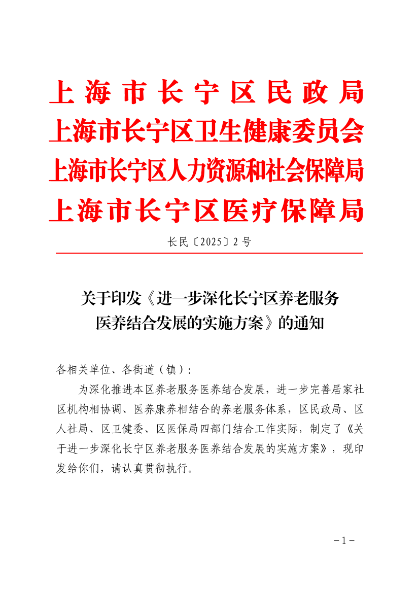 關(guān)于進(jìn)一步深化長寧區(qū)養(yǎng)老服務(wù)醫(yī)養(yǎng)結(jié)合發(fā)展的實(shí)施方案