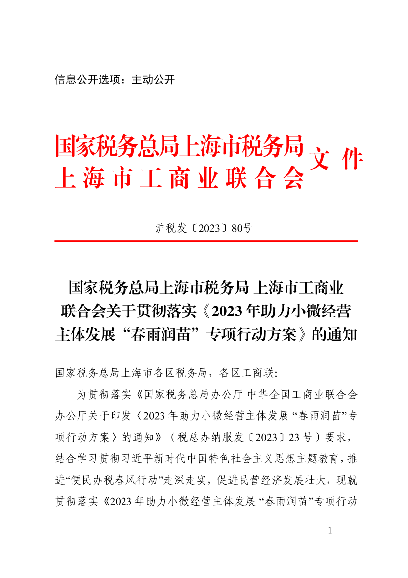 ??為貫徹落實《國家稅務(wù)總局辦公廳 中華全國工商業(yè)聯(lián)合會辦公廳關(guān)于印發(fā)〈2023年助力小微經(jīng)營主體發(fā)展 “春雨潤苗”專項行動方案〉的通知》(稅總辦納服發(fā)〔2023〕23號)要求,結(jié)合學(xué)習(xí)貫徹習(xí)近平新時代中國特色社會主義思想主題教育,推進“便民辦稅春風(fēng)行動”走深走實,促進民營經(jīng)濟發(fā)展壯大,現(xiàn)就貫徹落實《2023年助力小微經(jīng)營主體發(fā)展 “春雨潤苗”專項行動方案》有關(guān)事宜通知如下。