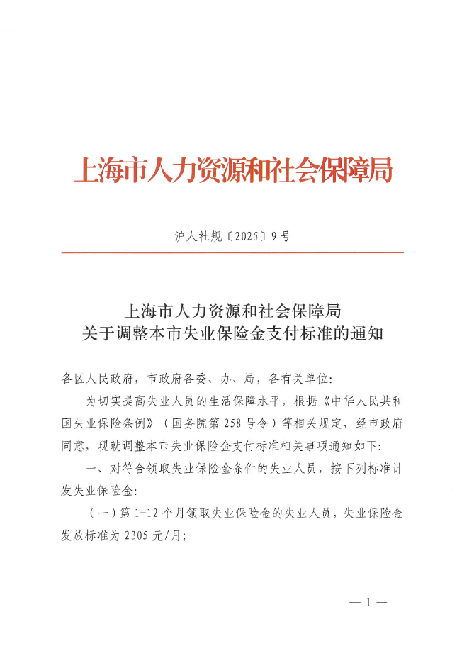 ??二、上述失業(yè)保險金支付標準自2025年7月1日起執(zhí)行。本通知有效期至2027年6月30日?!渡虾J腥肆Y源和社會保障局關于調整本市失業(yè)保險金支付標準的通知》(滬人社規(guī)〔2024〕13號)同時廢止。