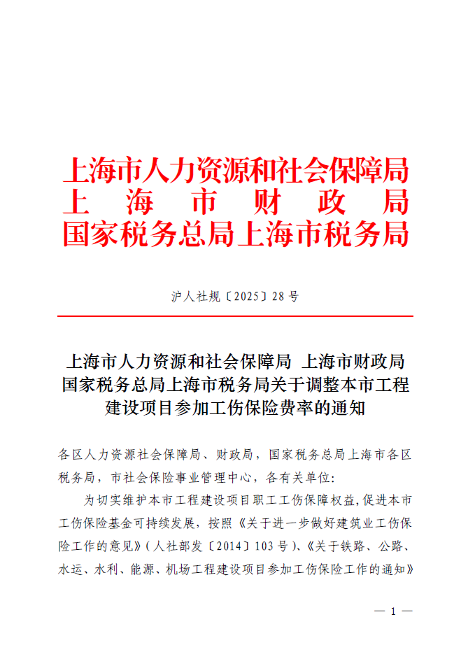 ??為切實維護本市工程建設項目職工工傷保障權益,促進本市工傷保險基金可持續(xù)發(fā)展,按照《關于進一步做好建筑業(yè)工傷保險工作的意見》(人社部發(fā)〔2014〕103號)、《關于鐵路、公路、水運、水利、能源、機場工程建設項目參加工傷保險工作的通知》(人社部發(fā)〔2018〕3號)等文件規(guī)定,并根據(jù)“以支定收、收支平衡”原則,從2026年1月1日起,本市按項目參保的工程建設項目,工傷保險費按照建設工程施工合同或項目標段合同載明的合同價的1.2‰確定;現(xiàn)行0.8‰費率執(zhí)行至2025年底。
