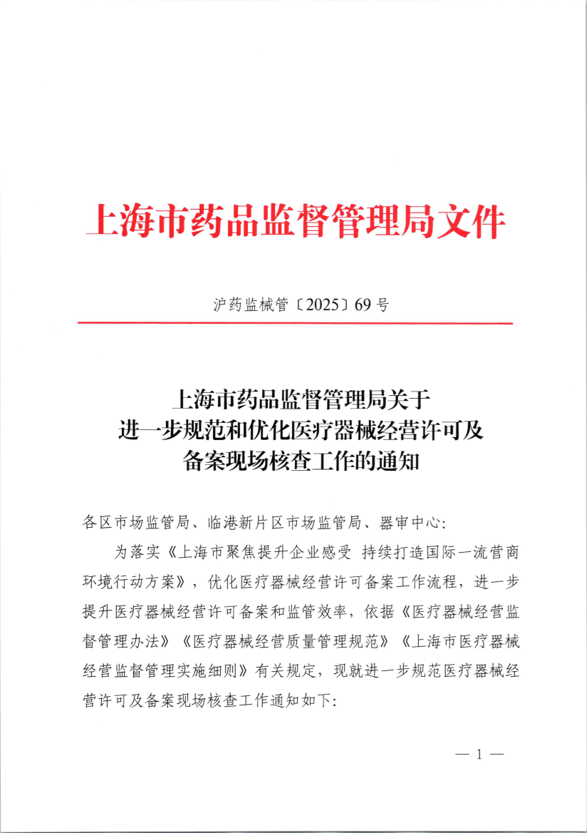 滬藥監(jiān)械管〔2025〕69號(hào)