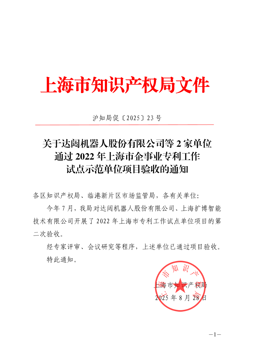 ??今年7月,我局對(duì)達(dá)闥機(jī)器人股份有限公司、上海擴(kuò)博智能技術(shù)有限公司開(kāi)展了2022年上海市專(zhuān)利工作試點(diǎn)單位項(xiàng)目的第二次驗(yàn)收。