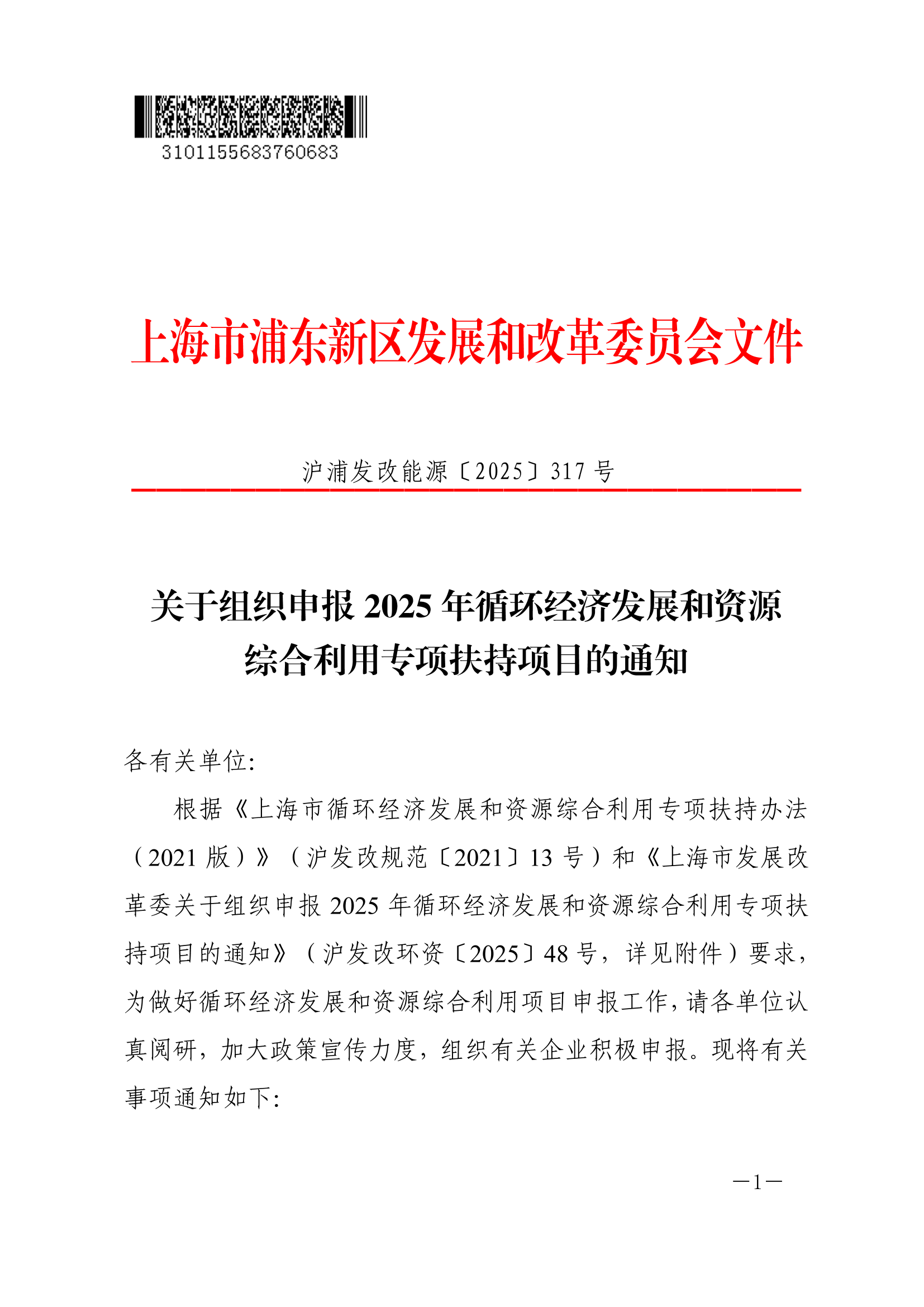 ??根據(jù)《上海市循環(huán)經(jīng)濟發(fā)展和資源綜合利用專項扶持辦法(2021版)》(滬發(fā)改規(guī)范〔2021〕13號)和《上海市發(fā)展改革委關(guān)于組織申報2025年循環(huán)經(jīng)濟發(fā)展和資源綜合利用專項扶持項目的通知》(滬發(fā)改環(huán)資〔2025〕48號,詳見附件)要求,為做好循環(huán)經(jīng)濟發(fā)展和資源綜合利用項目申報工作,請各單位認(rèn)真閱研,加大政策宣傳力度,組織有關(guān)企業(yè)積極申報。現(xiàn)將有關(guān)事項通知如下: