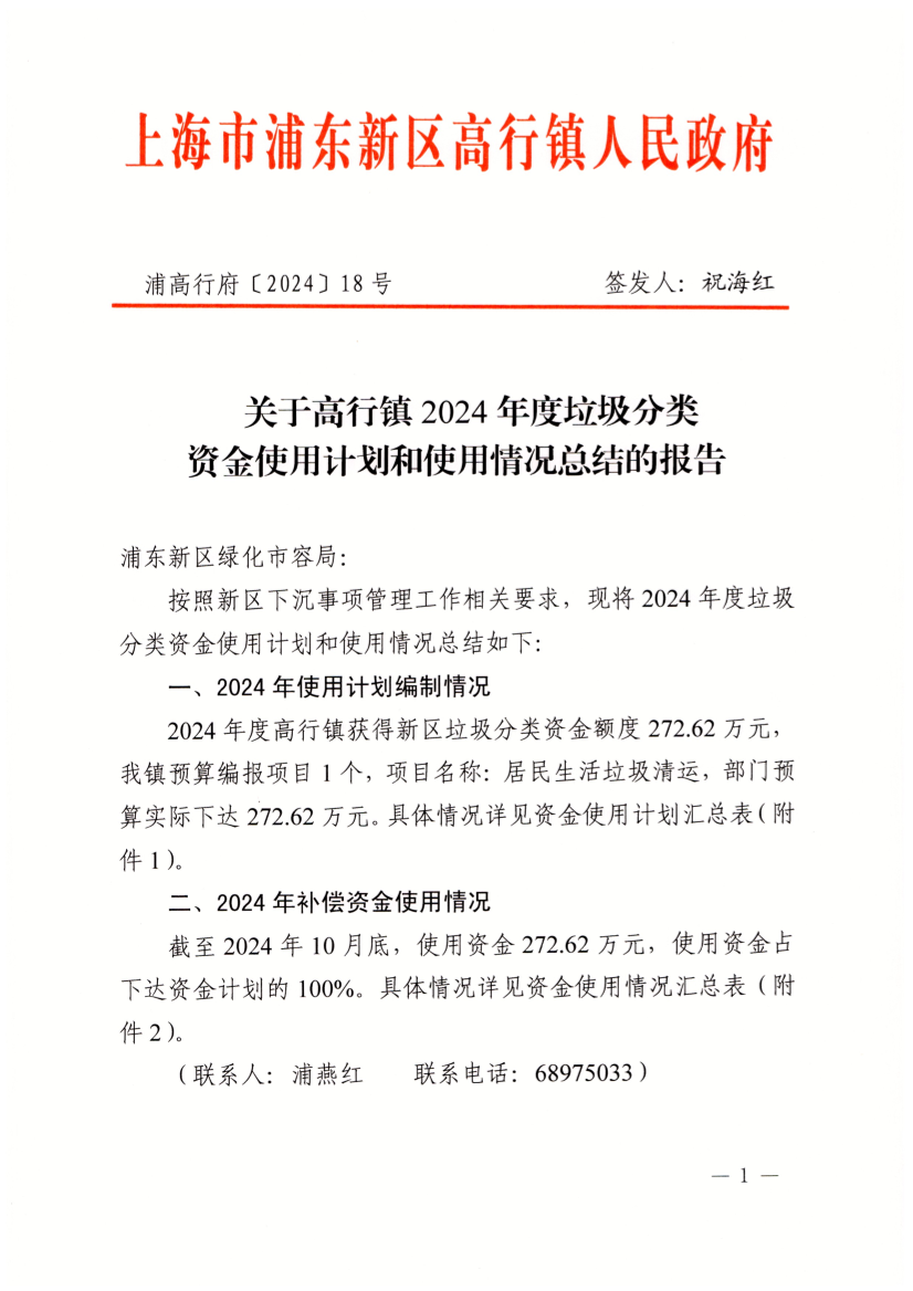 關(guān)于高行鎮(zhèn)2024年度垃圾分類資金使用計劃和使用情況總結(jié)的報告