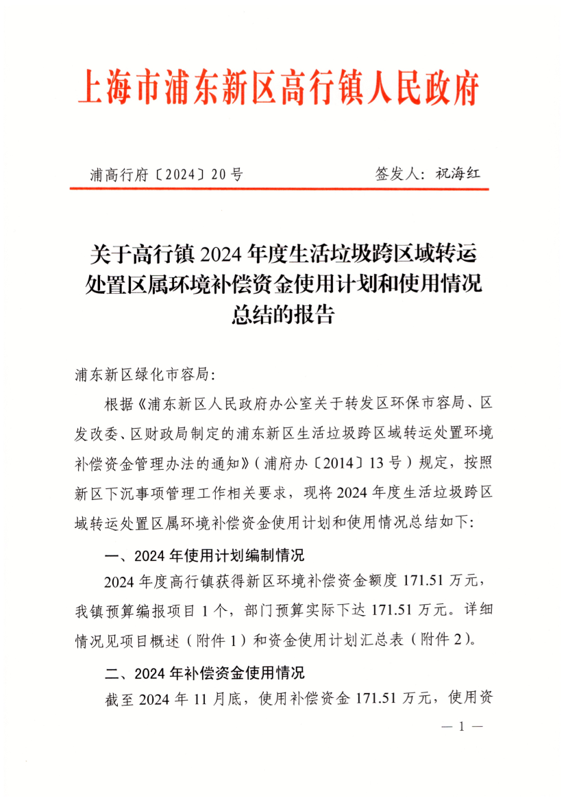 關(guān)于高行鎮(zhèn)2024年度生活垃圾跨區(qū)域轉(zhuǎn)運處置區(qū)屬環(huán)境補(bǔ)償資金使用計劃和使用情況總結(jié)的報告