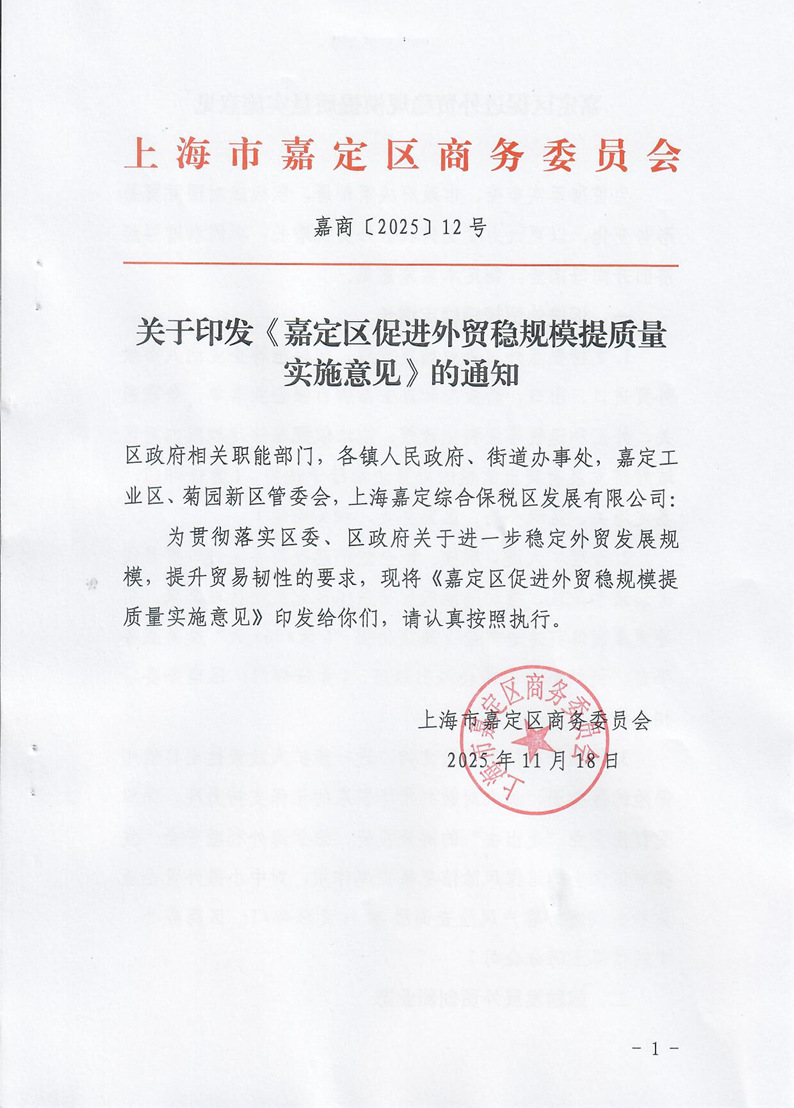嘉定區(qū)促進外貿(mào)穩(wěn)規(guī)模提質(zhì)量實施意見