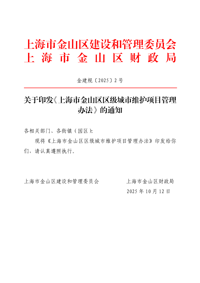 ??為進一步提高城市精細化管理水平和城市維護項目管理的前瞻性、系統(tǒng)性、科學性,根據(jù)《上海市人民政府關(guān)于批轉(zhuǎn)市住房城鄉(xiāng)建設(shè)管理委、市財政局修訂的<上海市市級城市維護項目管理辦法>的通知》(滬府規(guī)〔2025〕1號)等文件要求,結(jié)合本區(qū)實際,制定本辦法。